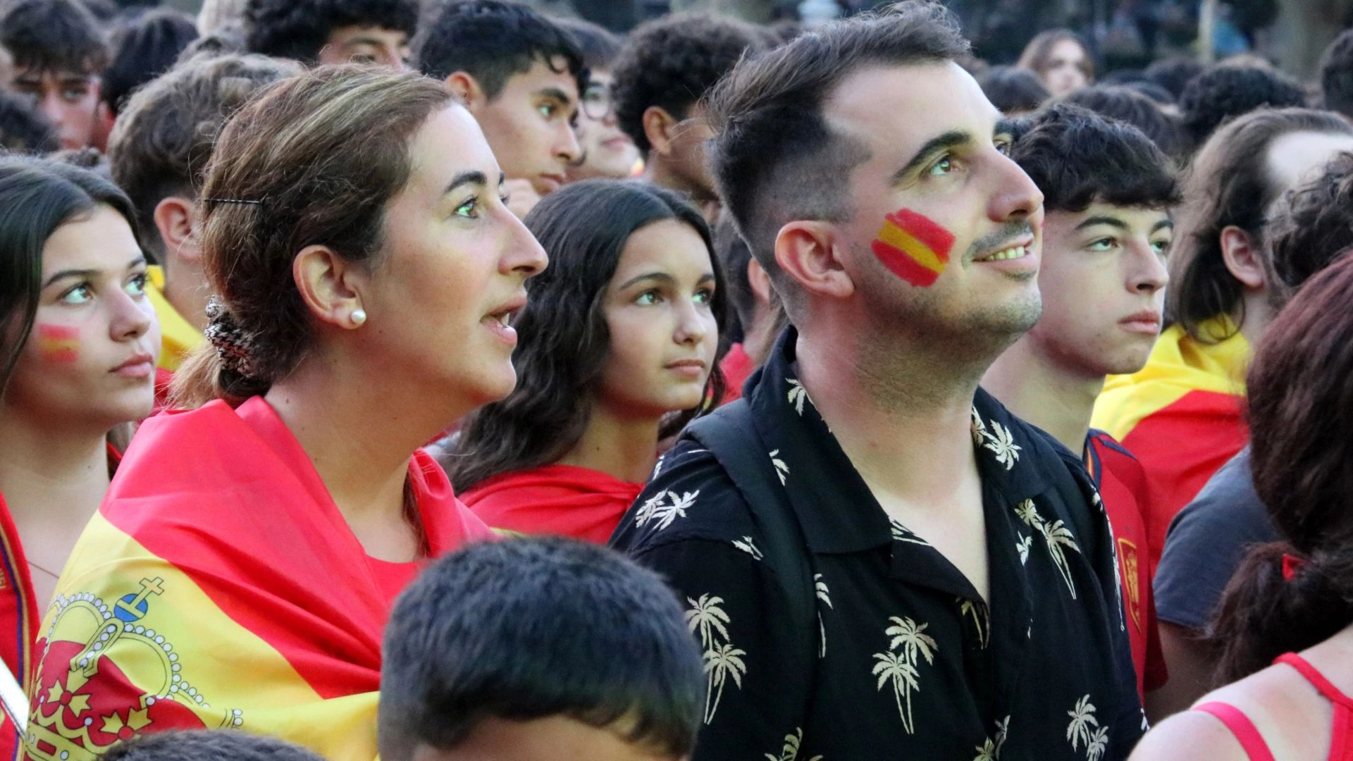 Seguidors de la selecció espanyola de futbol, pendents de la final de l'Eurocopa des de Mataró / Gemma Sánchez Bonel (ACN)