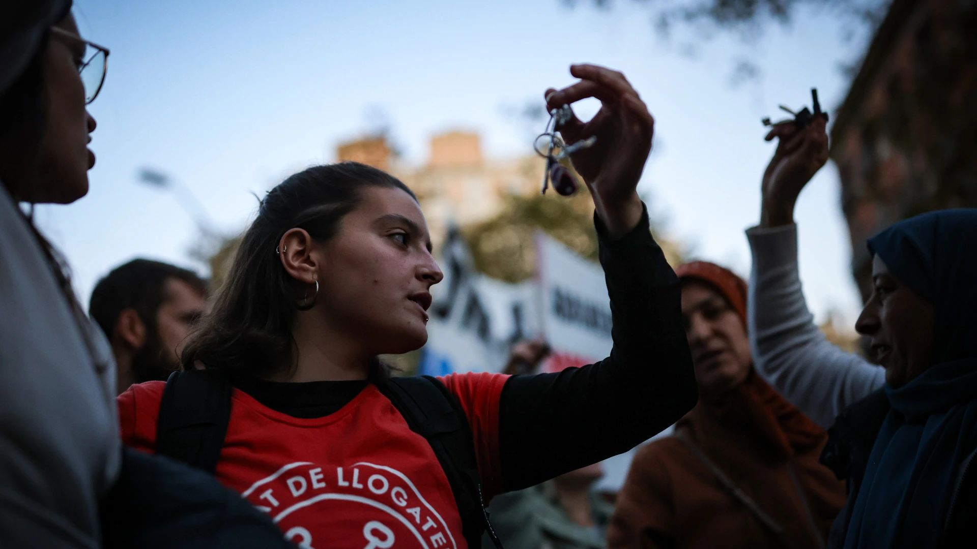 Una noia mostra la clau d'un pis durant la manifestació / Jordi Borràs (ACN)