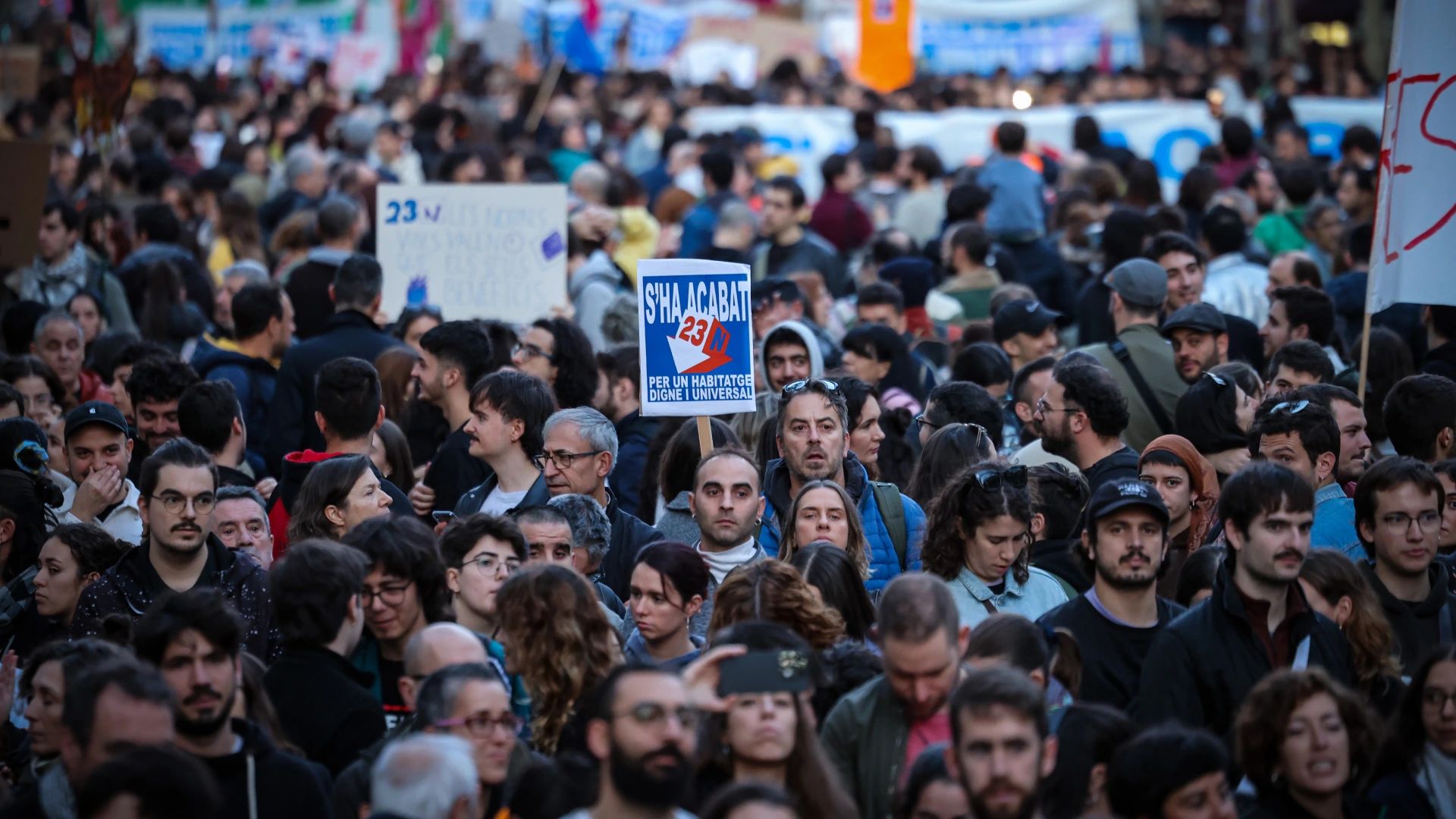 Desenes de milers de persones van omplir els carrers de Barcelona el 23 de novembre de 2024 per exigir mesures “urgents” que garanteixin l'accés a habitatges assequibles i una rebaixa del preu del lloguer. La mobilització, impulsada per més de 4.000 entitats, incloent-hi el Sindicat de Llogateres, va reunir 126.000 participants segons l’organització, tot i que la Guàrdia Urbana va xifrar l’assistència en 22.000 persones.