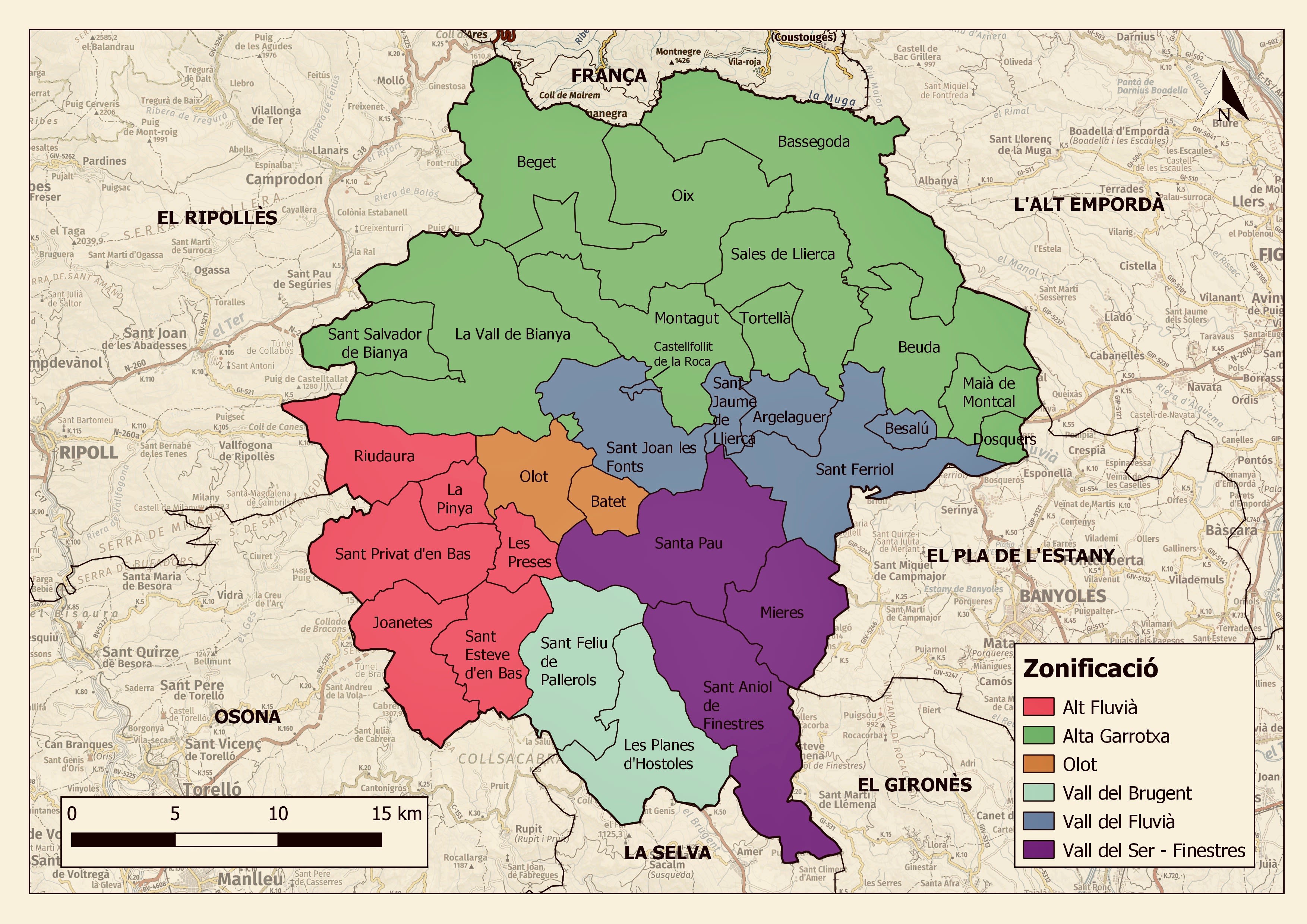 El projecte del PEHOC va decidir incorporar aquests mapes de zonificació perquè la comarca té realitats molt diferents, no és el mateix la zona de l’Alta Garrotxa que la Vall d’en Bas i és imprescindible treballar cada una d’elles de manera concreta i diferenciada.