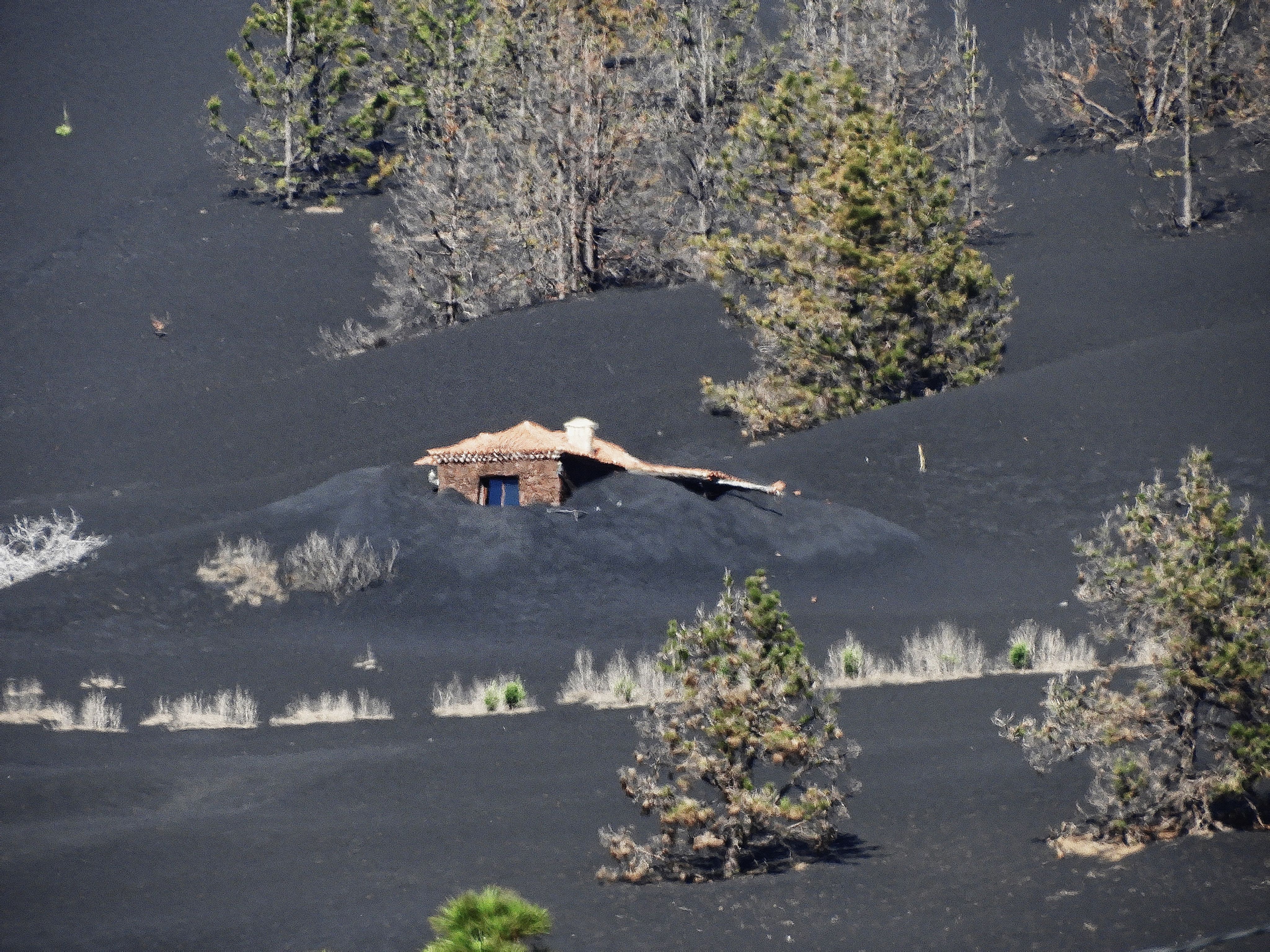 "Creien que la lava sortiria per Cuatro Caminos, però al final va desviar-se. Per a nosaltres va ser una gran diferència: allà viu menys gent, i hauria provocat menys destrosses", expliquen els Agents Mediambientals de La Palma. Molts dels habitatges dels residents van patir danys; alguns van quedar enfonsats sota una allau roent de lava i cendres.
