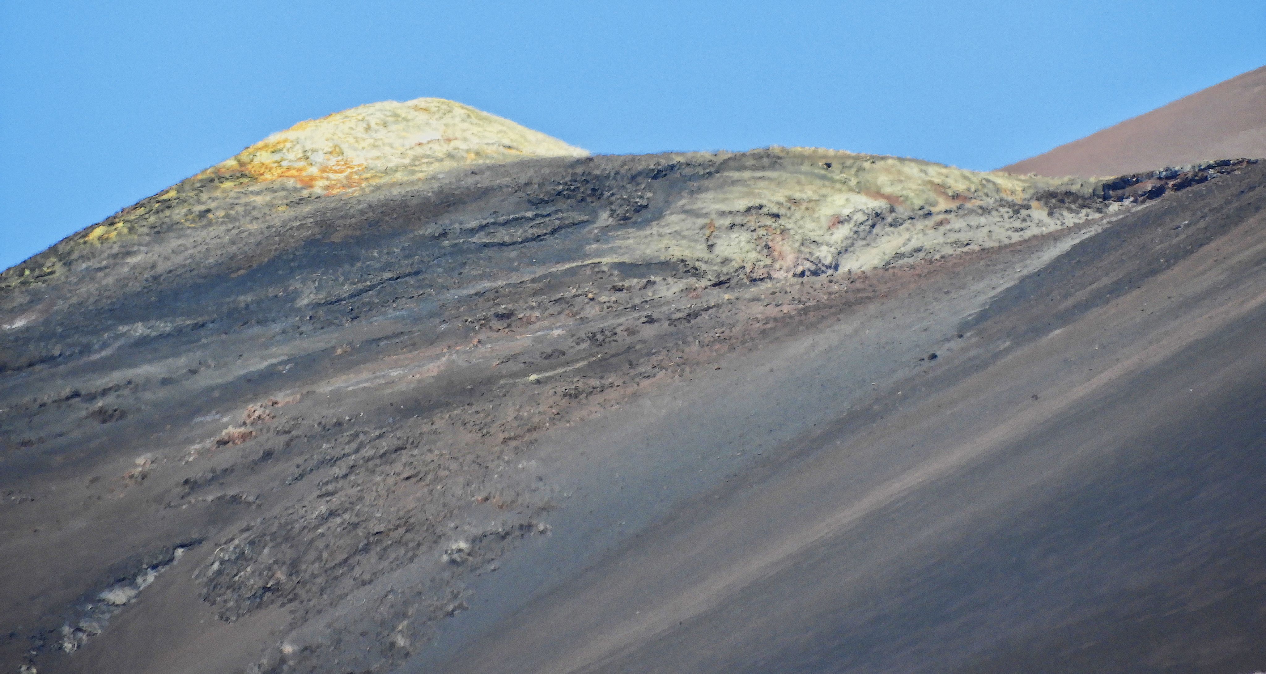 El Cumbre Vieja encara fumeja. “Les taques groguenques al voltant del cràter són provocades per l’emissió contínua de diòxid de sofre, i són un clar indici que la lava encara no s’ha refredat sota l’escorça del volcà”, apunten els Agents Mediambientals.