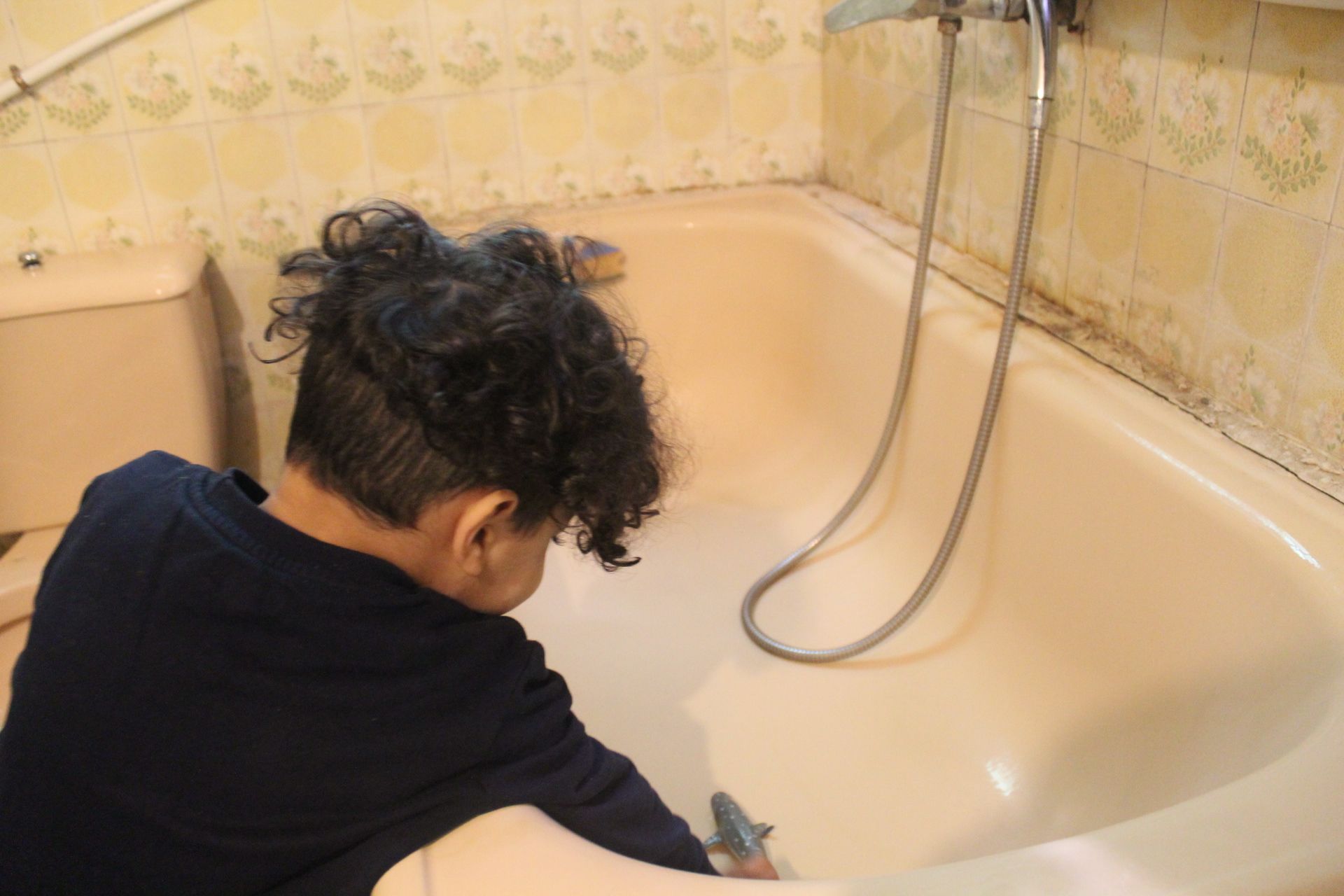 En Ghali i un tauró de joguina a la banyera. PATRICIA GORINA